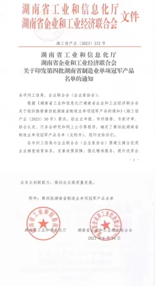 NEWS CENTER喜讯|长沙4166全球赢家的信心荣获湖南省制造业单项冠军