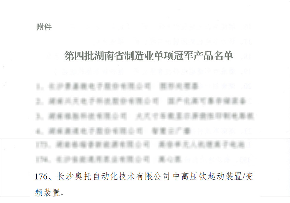 近日,湖南省工业和信息化厅发布了《第四批湖南省制造业单项冠军产品名单》,4166am官网主站凭借“中高压软起动装置/变频装置”荣获湖南省制造业单项冠军,奠定了该公司在中高压软动装置等领域的重要地位,并得到了政府的认可。